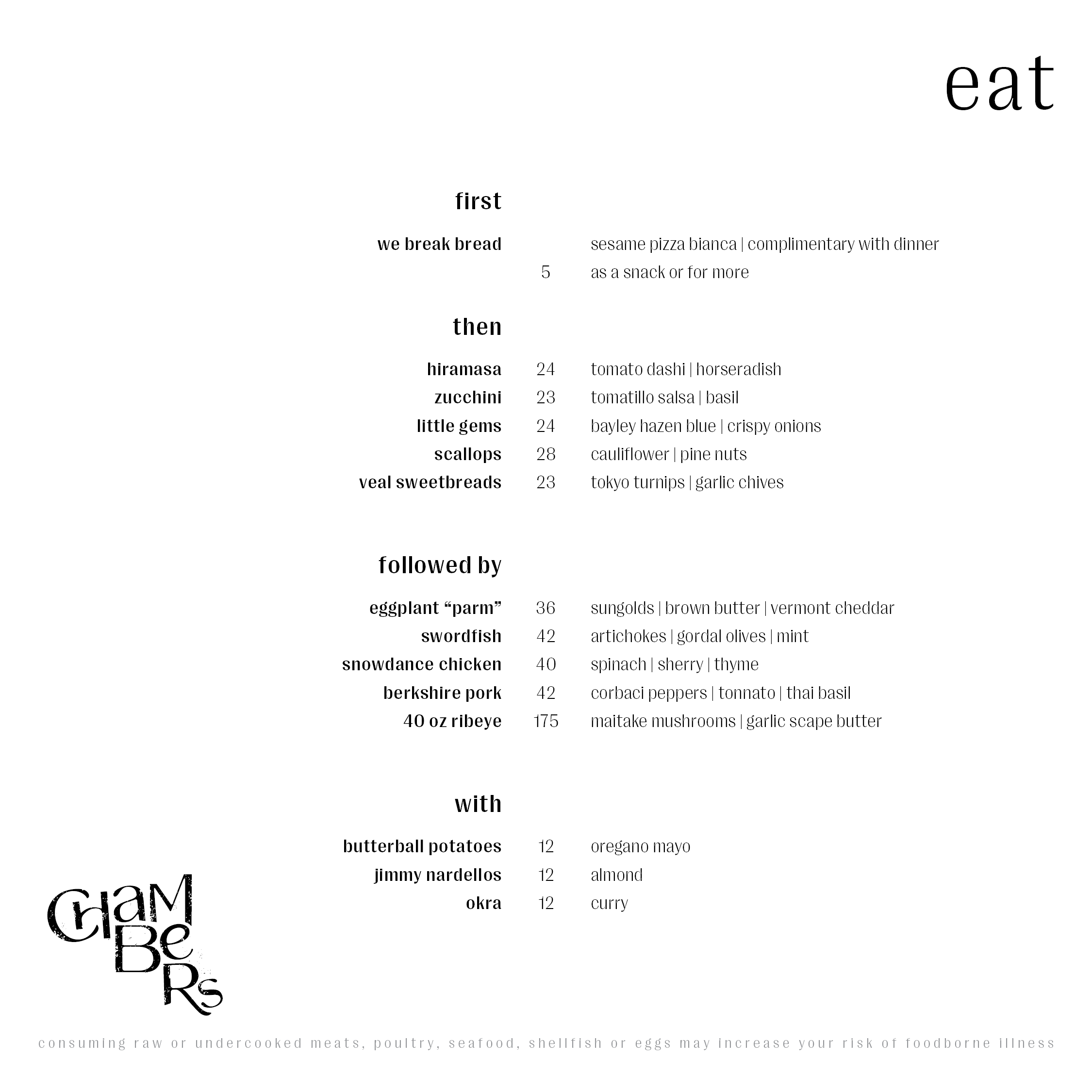 Whether you’re visiting from down the block here in Tribeca or from halfway around the world, Chambers aspires to be on top of your list of favorite neighborhood restaurants.
